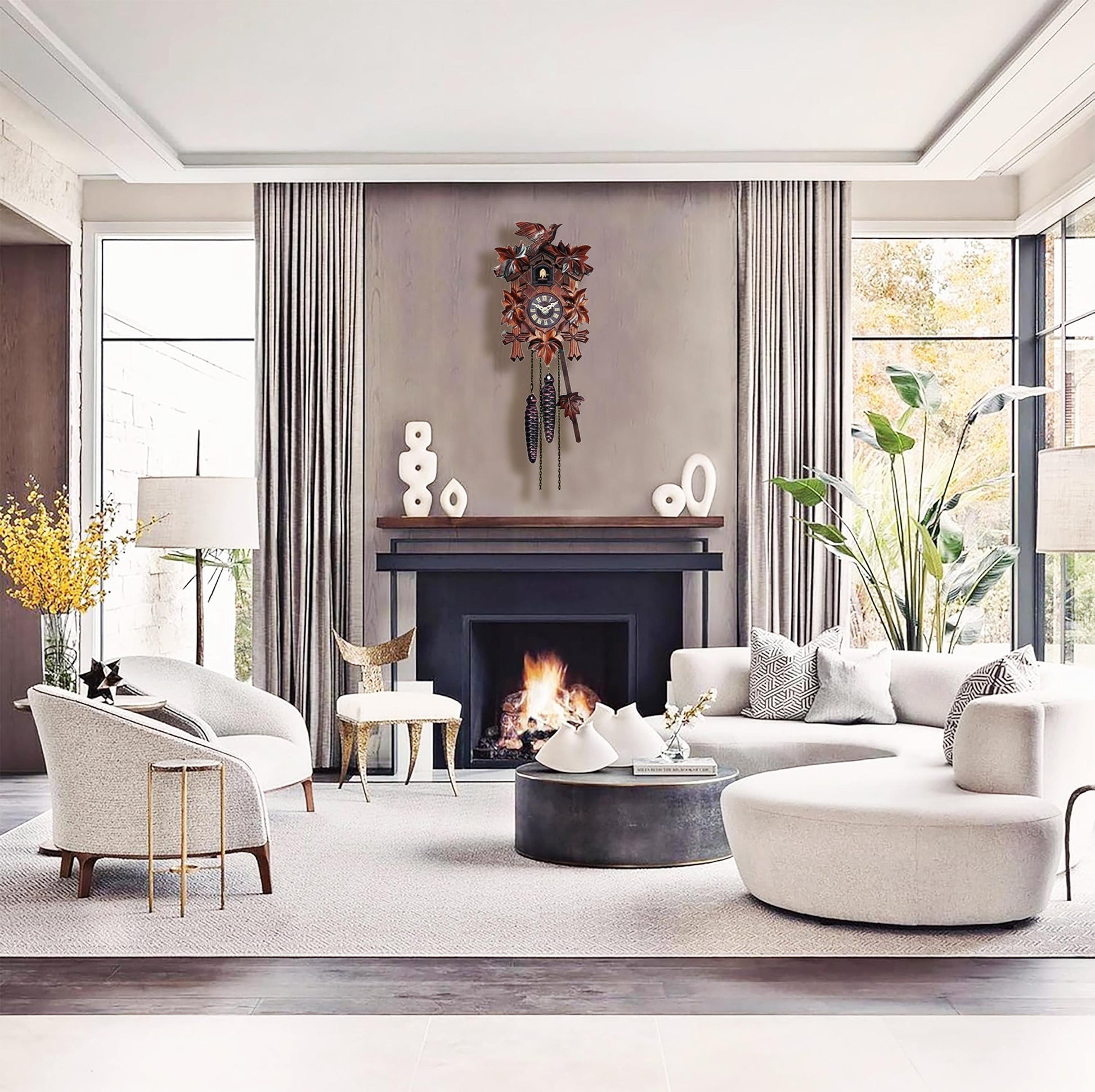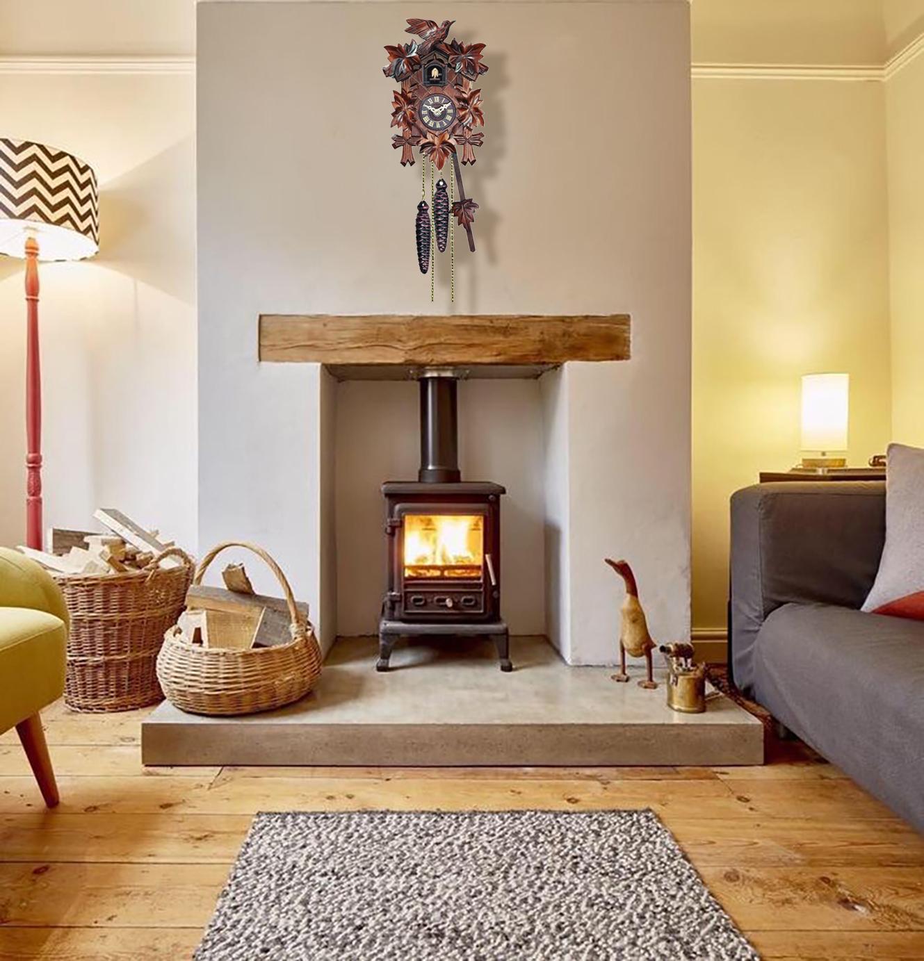 - TRADITIONAL DESIGN: The cuckoo clock is decorated with hand carved wooden elements, showing scenes from the nature.